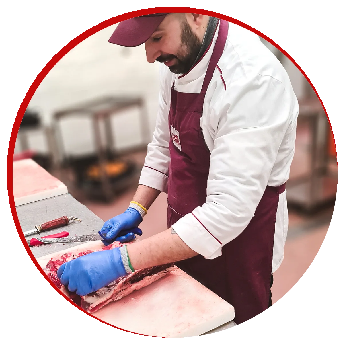 Daniele si occupa con grande competenza della preparazione degli hamburger, della macinatura delle carni trite, della legatura degli arrosti e della toilettatura della carne e, i vari impasti per farcire i nostri pronti a cuocere.